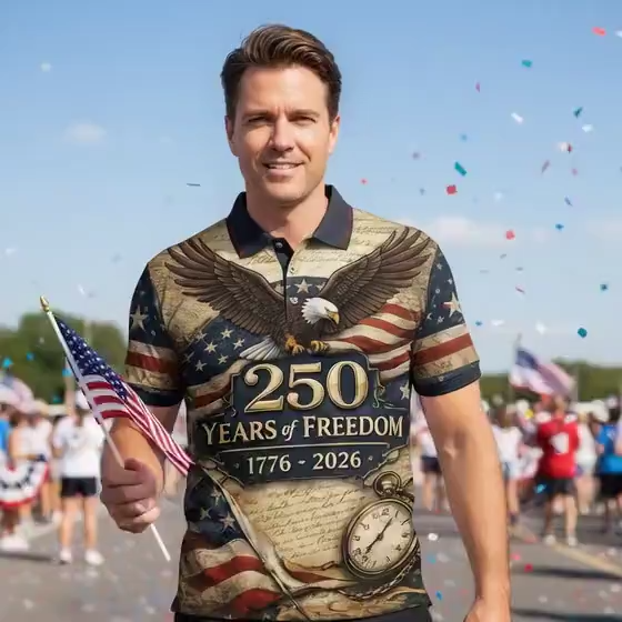 Men's Retro 250th Anniversary of the United States Independence Day Bald Eagle Print Polo Shirt