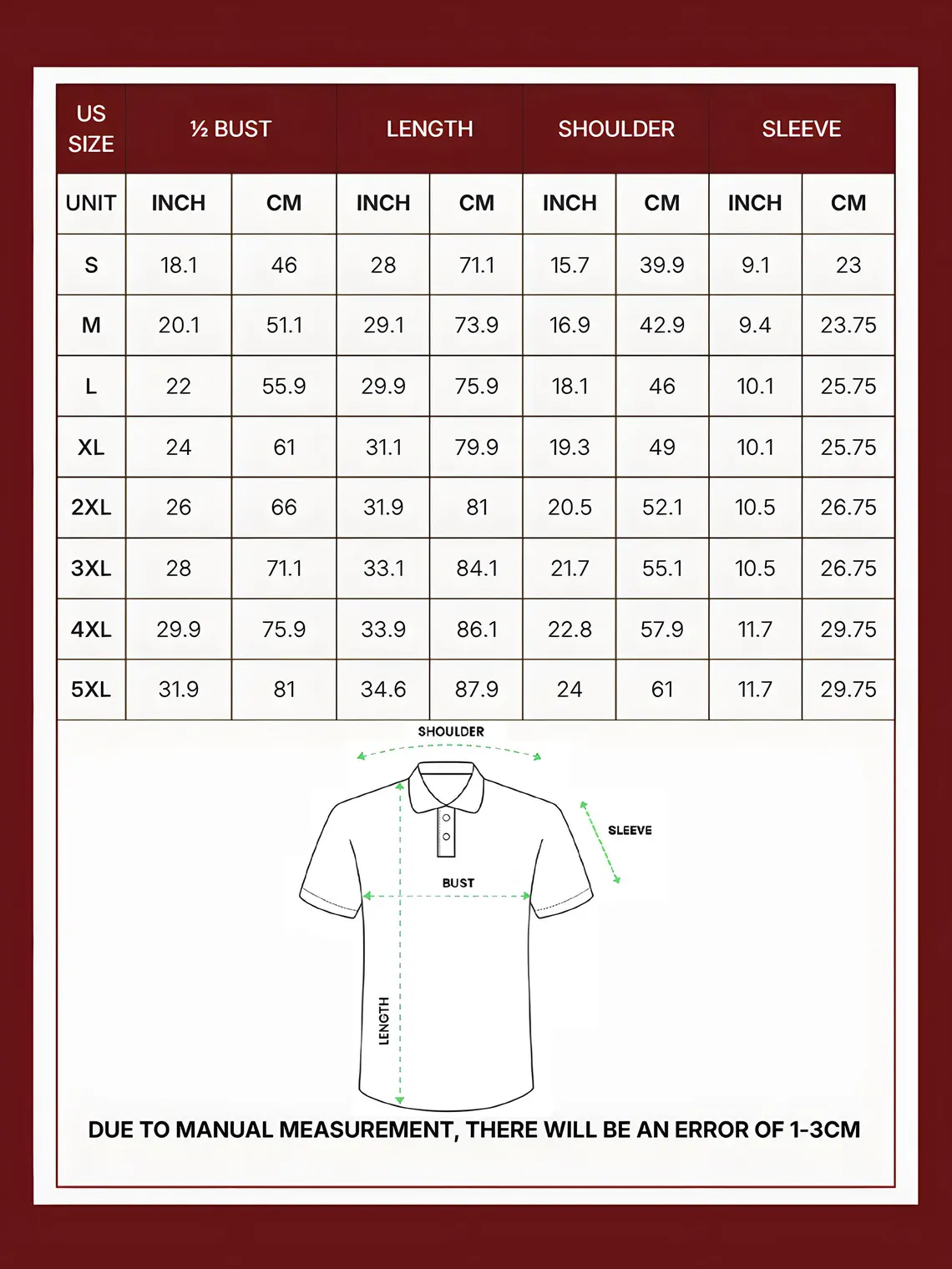 - Size Guide: Choose a size based on your preference for a relaxed or tailored fit.